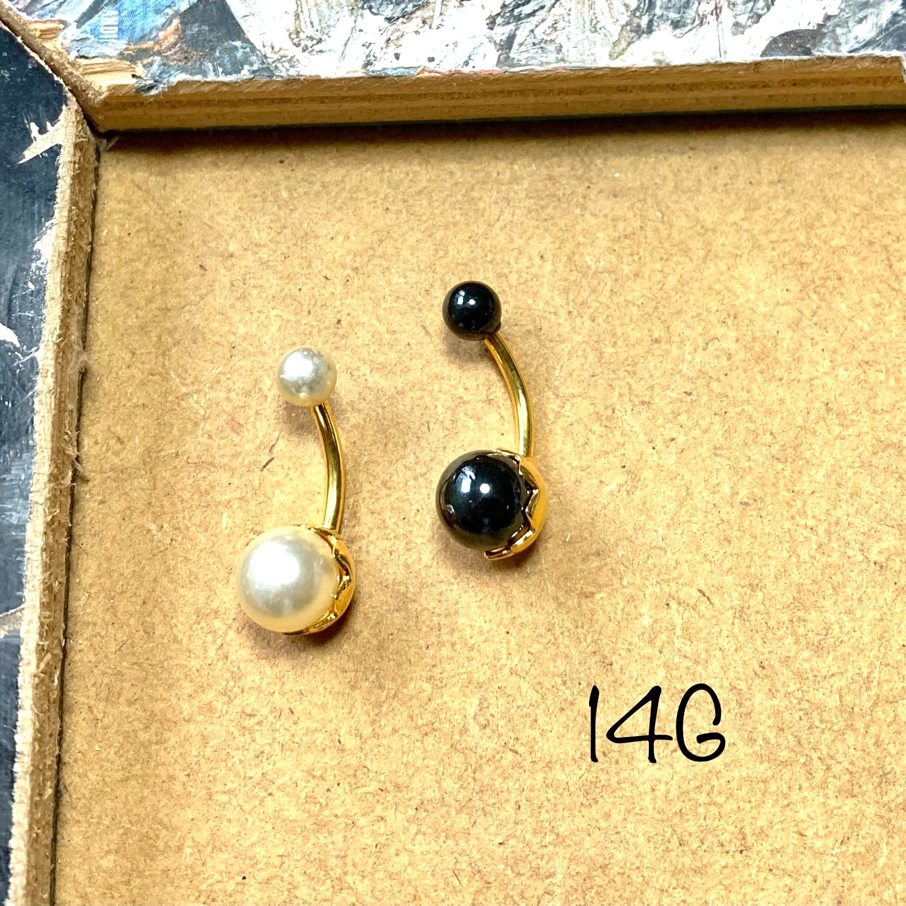 Gold Double Pearl へそピ No.001 14Ga【316L/Silver 925】
