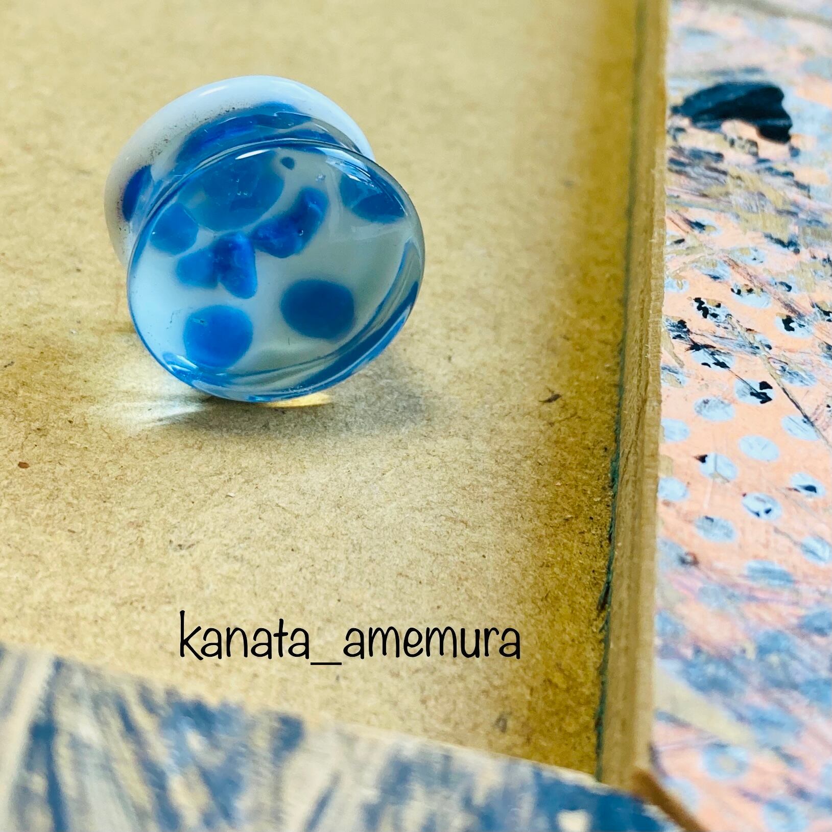 カラー小石プラグ Light blue/White 16mm【Glass】