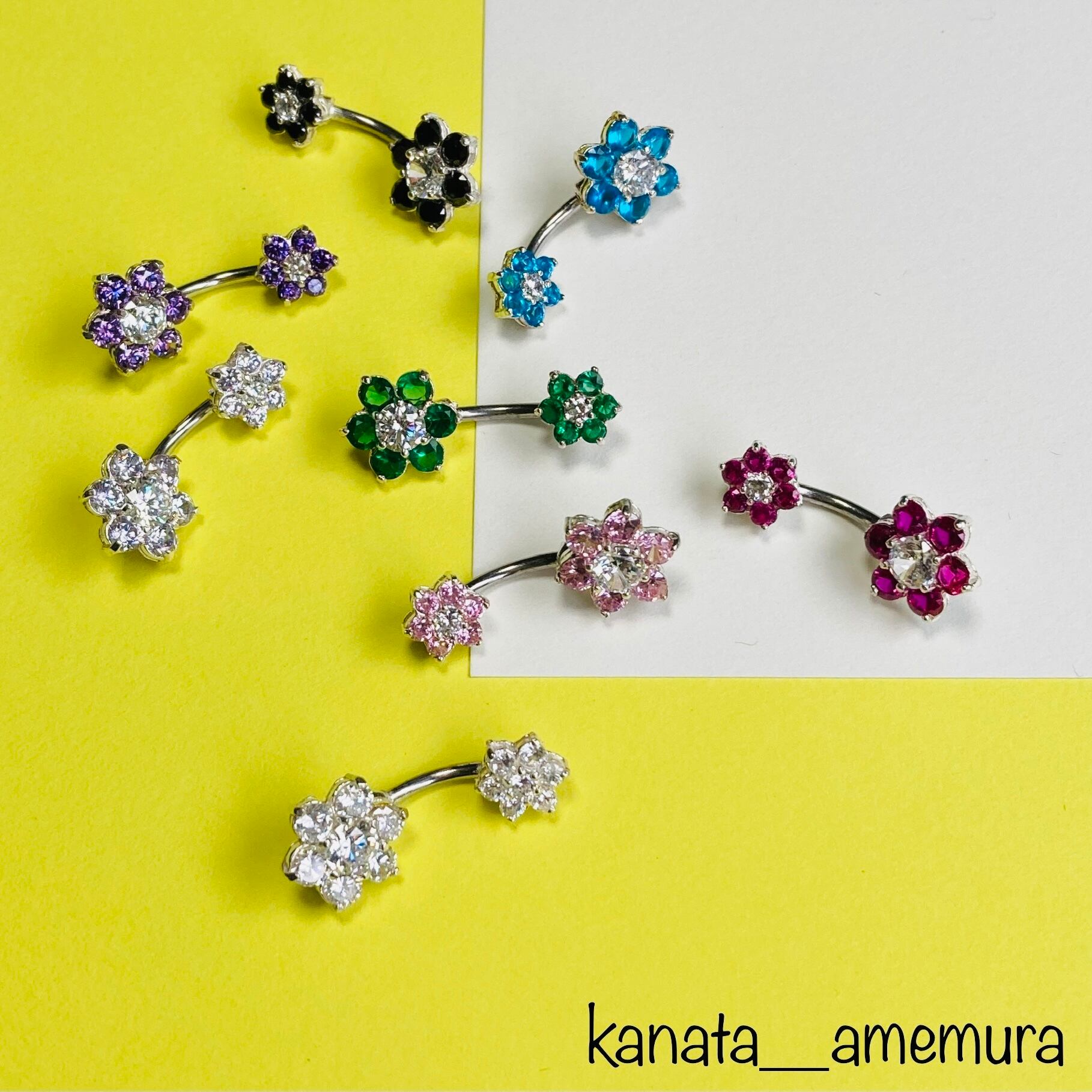 Double Flower へそピ No.025 14Ga 【316L/Silver 925】