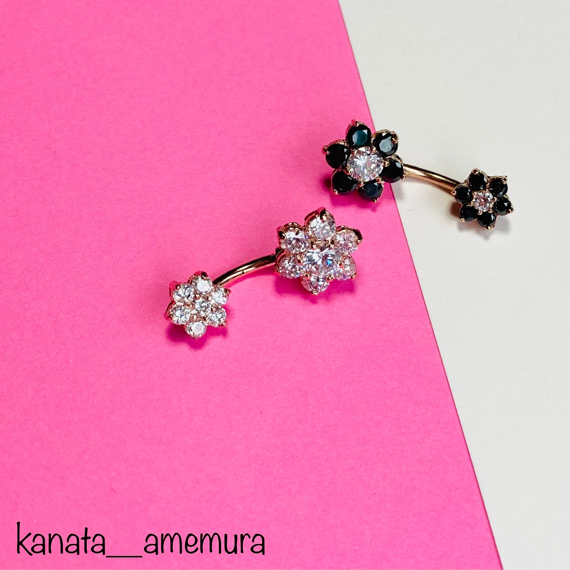 Rosegold Double Flower へそピ No.025 14Ga 【316L/Silver 925】