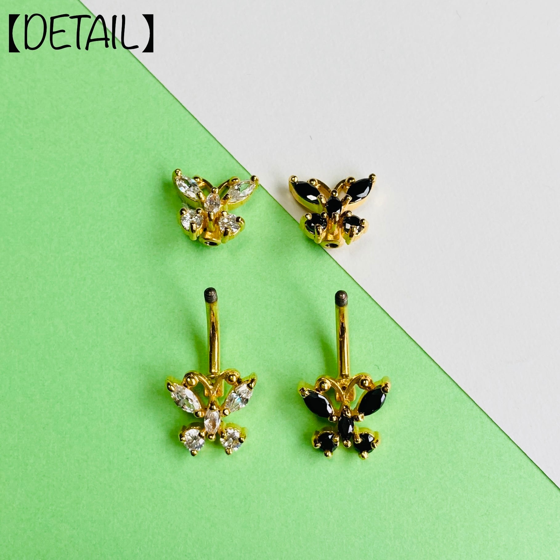 Gold Double butterfly へそピ No.066 14Ga【316L/Silver 925】