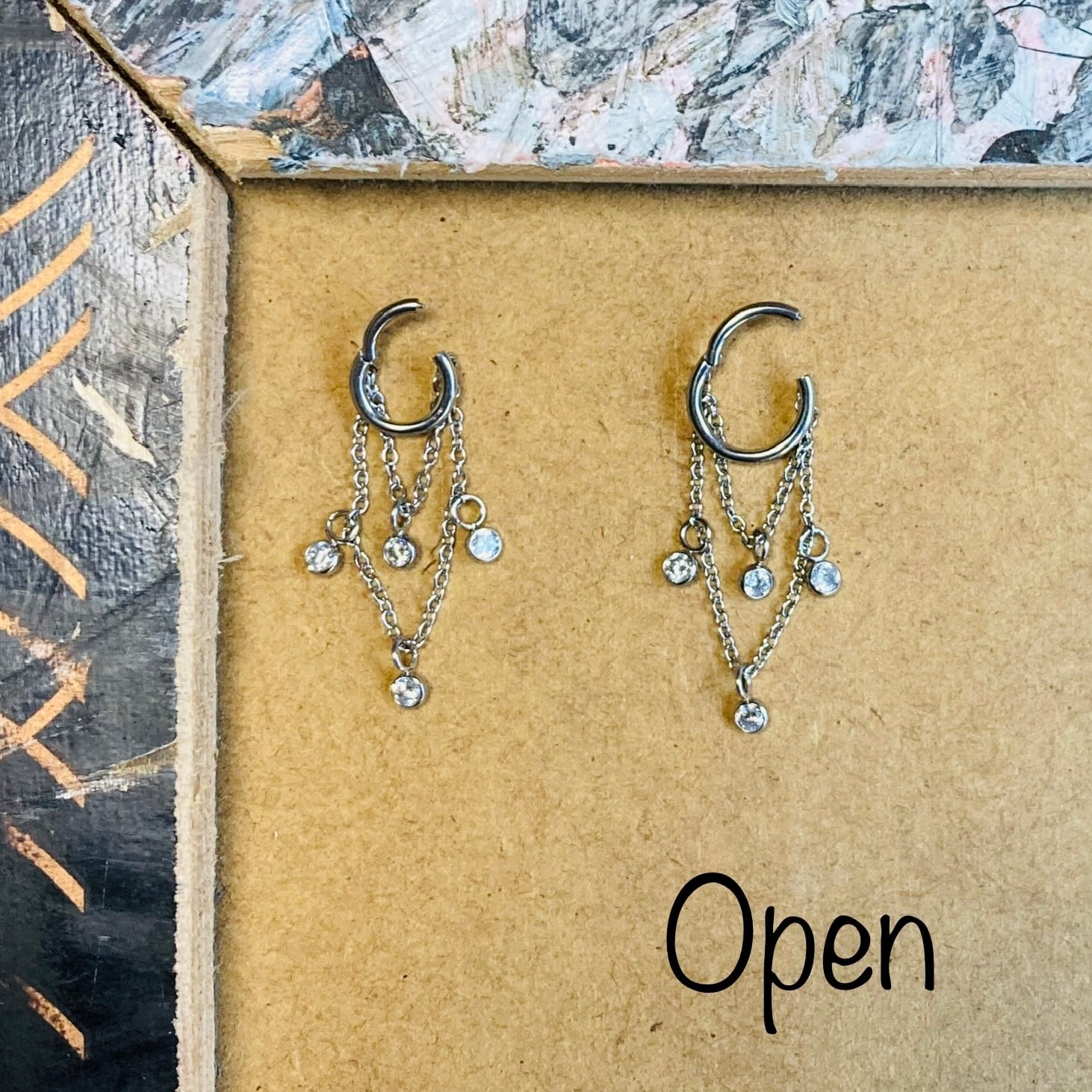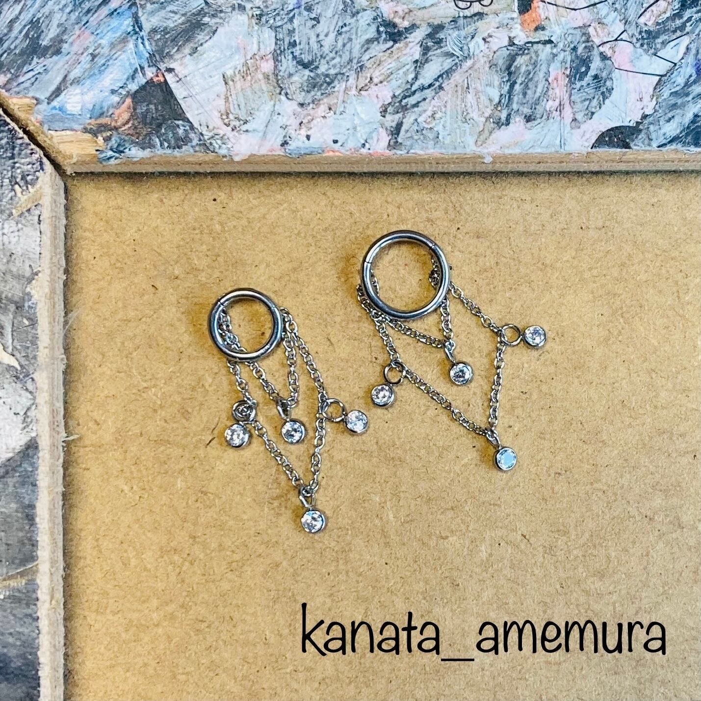 軟骨など上の部位につけて、チェーンがに耳のフチにかかるデザイン。。