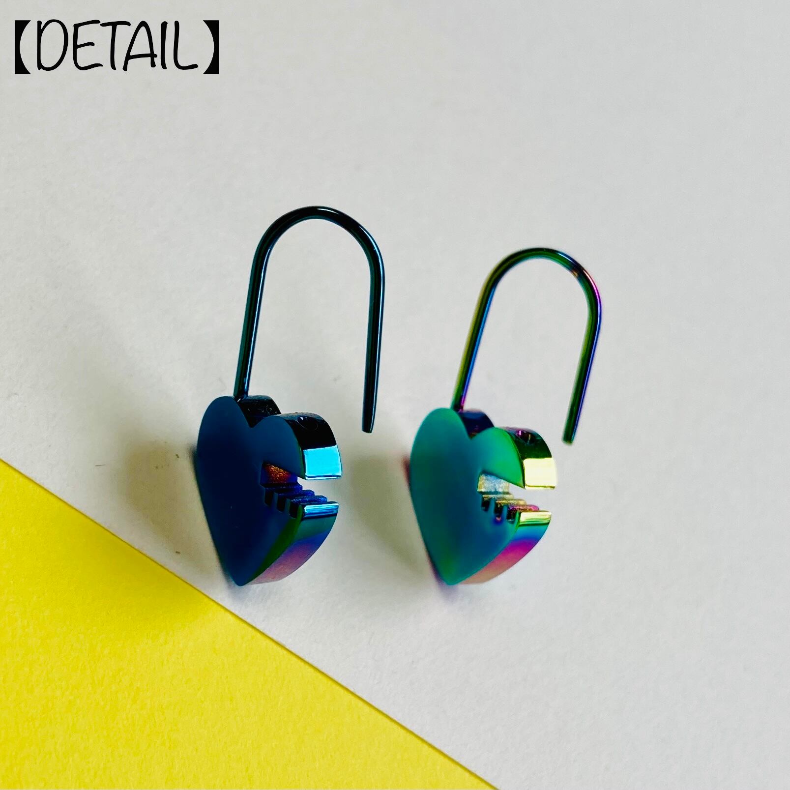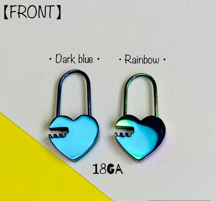 Dark blue&Rainbow Heart 南京錠ピアス Vol.1 18Ga 【316L】