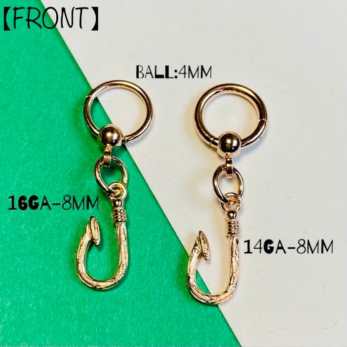 Rosegold ハワジュデザイン Fishhookチャーム 簡単キャプティブ 16,14Ga 【316L】