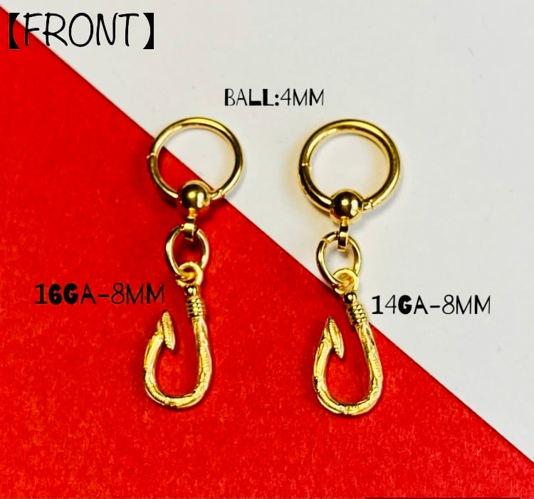 Gold ハワジュデザイン Fishhookチャーム 簡単キャプティブ 16,14Ga 【316L】