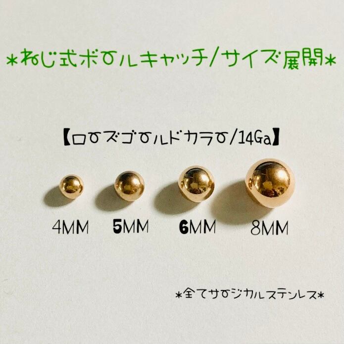 『ねじ式ボールキャッチ/サイズ展開』のローズゴールドカラーよりお選び頂けます。