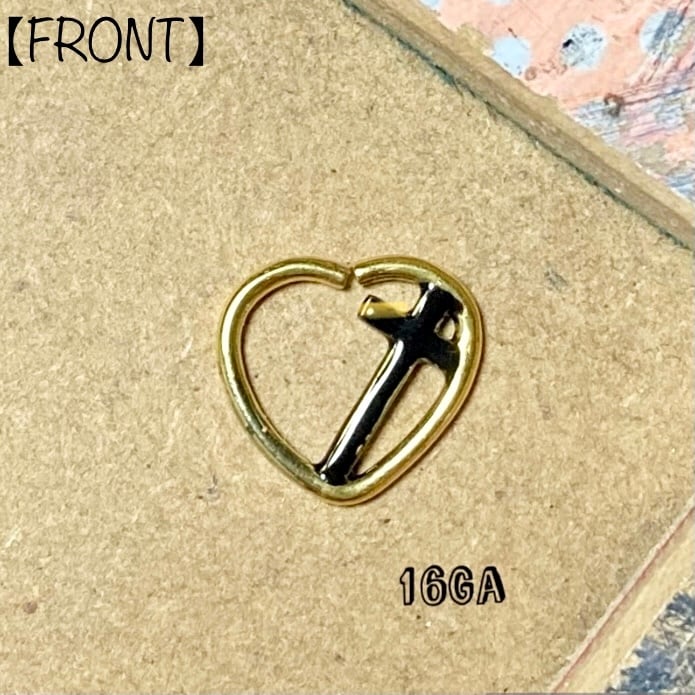 Gold Enamel Cross× Heart シームレスリング 16Ga (No.n-bc32)【316L】