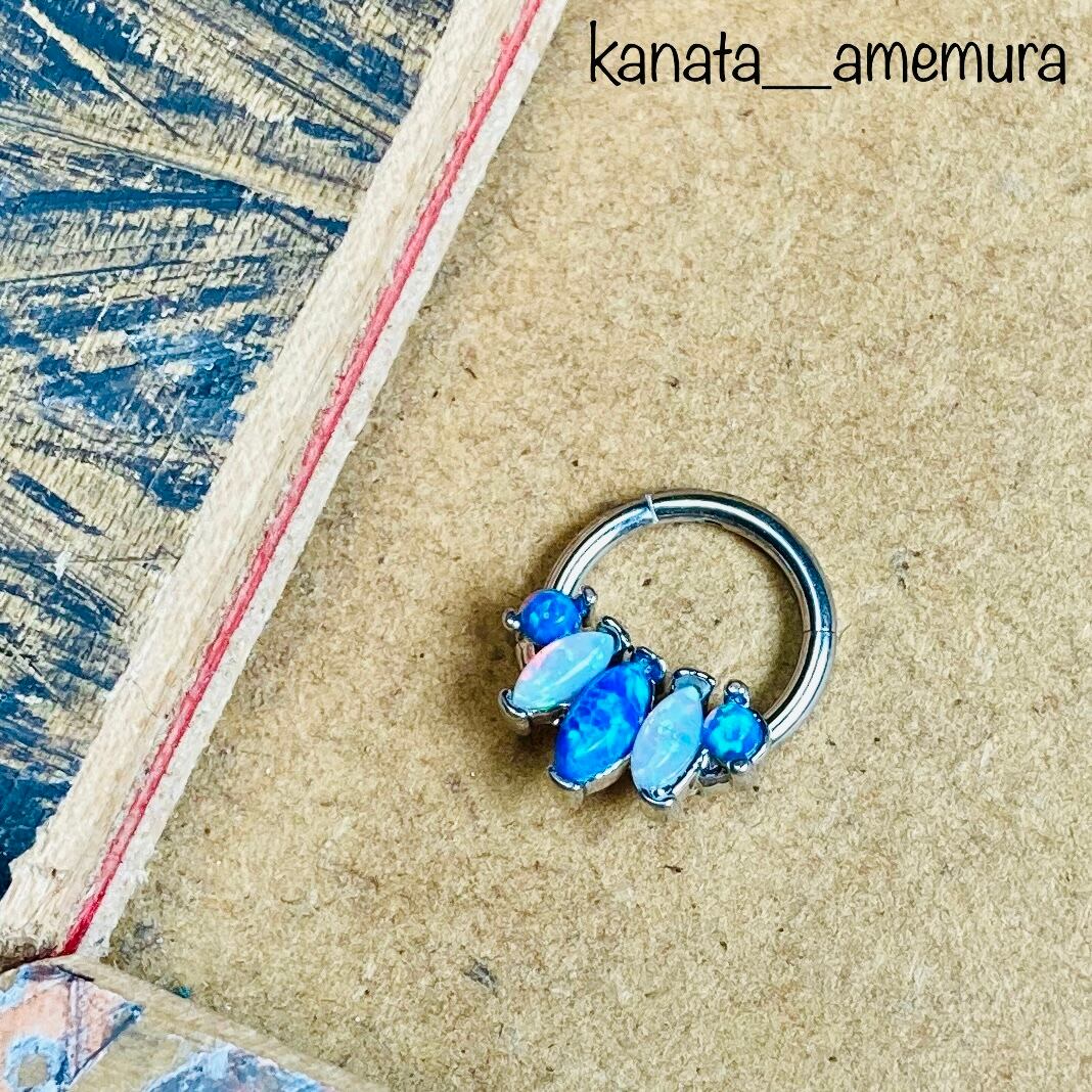 ☆ instagram ○ハイライト○ 掲載商品☆2 Tone Oval Fake Opal セグメントリング 16Ga 【316L】