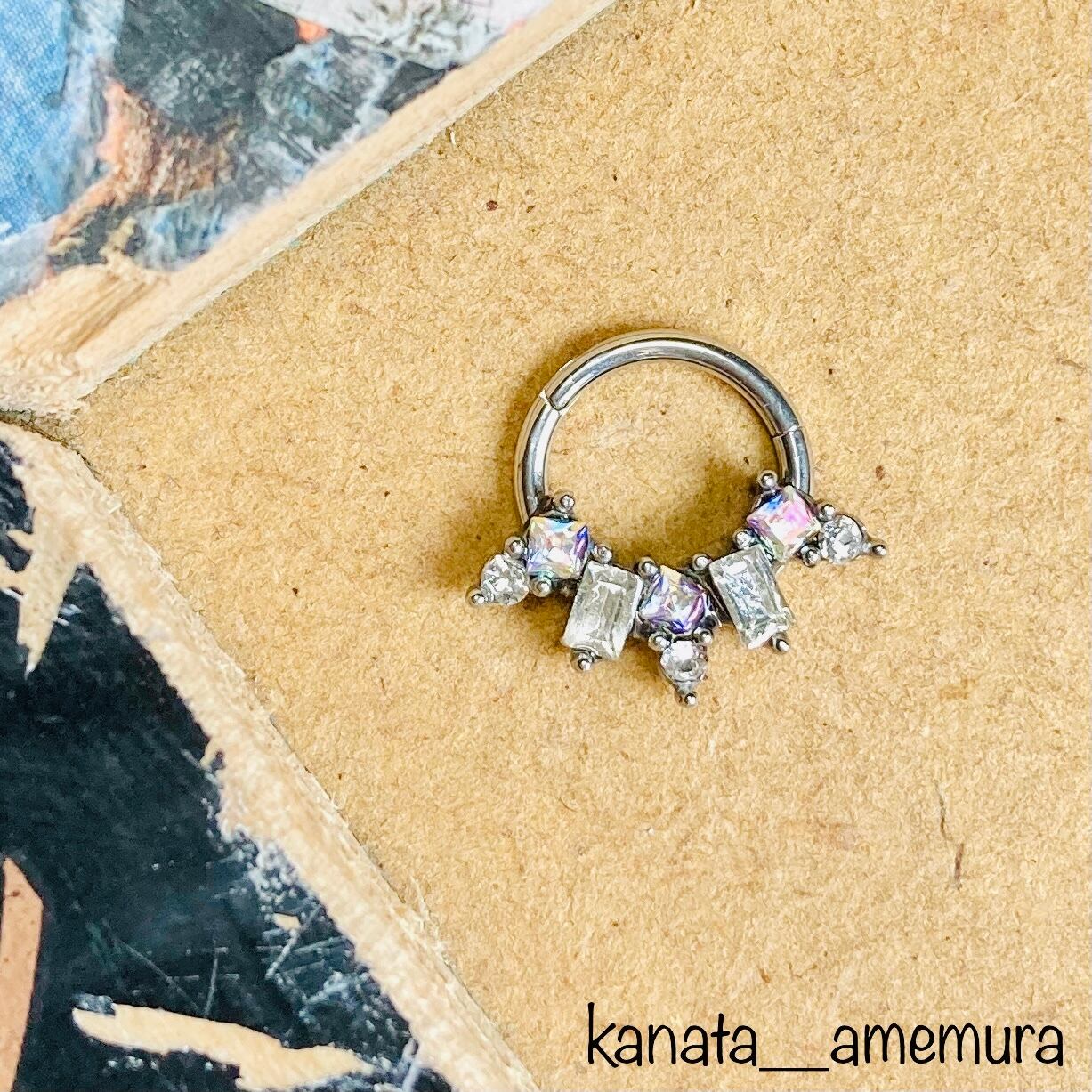 Crystal×Aurora Mix Jewel セグメントリング 16Ga 【316L】