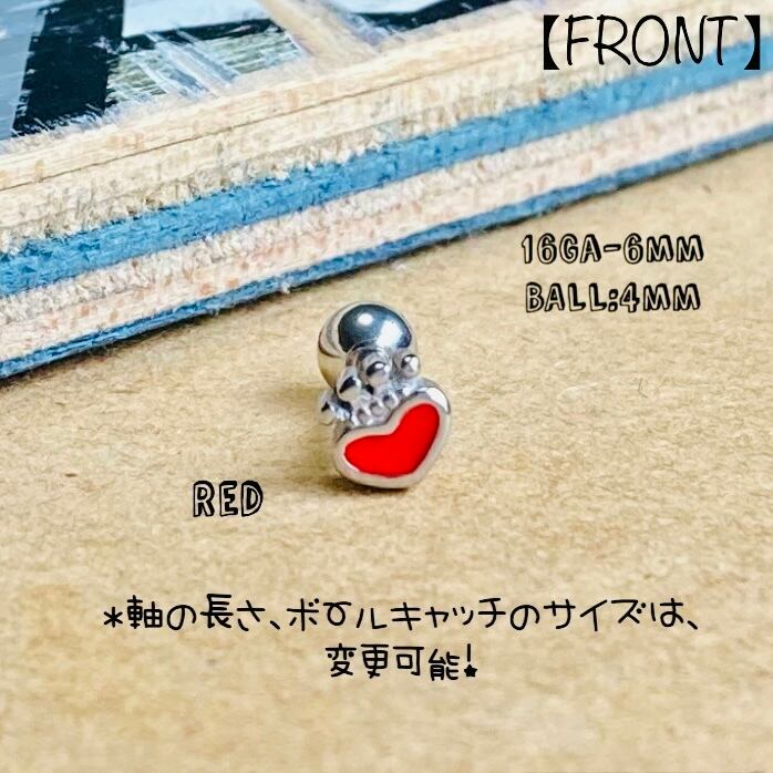 Enamel Heart×Crown Design バーベル 16Ga (No.389) 【316L】