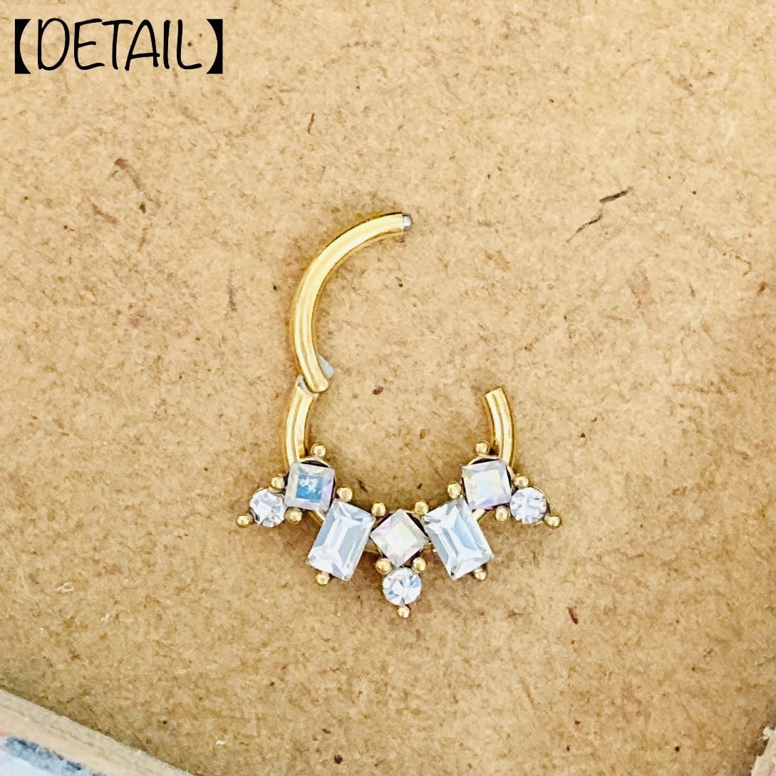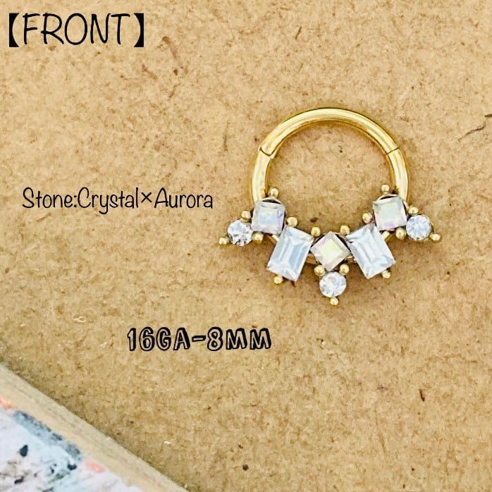 Gold Crystal×Aurora Mix Jewel セグメントリング 16Ga (No.hw-h93)【316L】