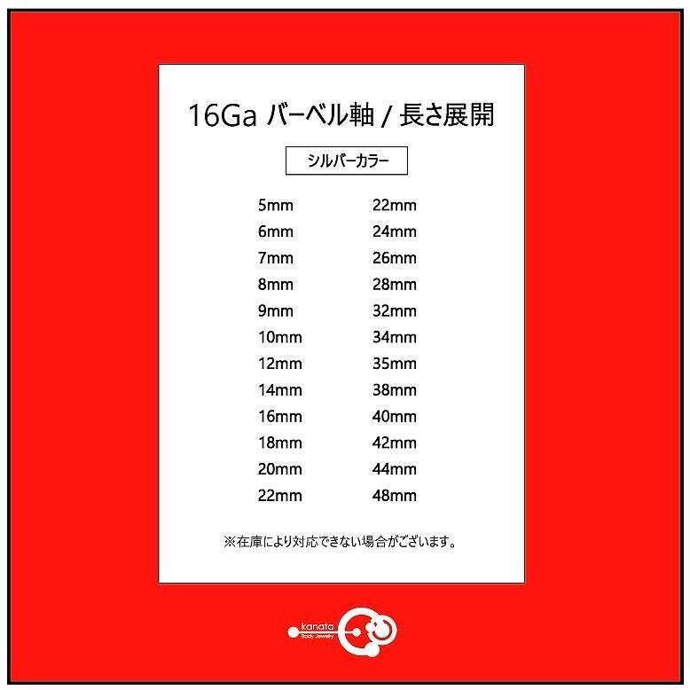 軸の長さは、『16Ga バーベル軸/長さ展開』のシルバーカラーよりお選び頂けます。