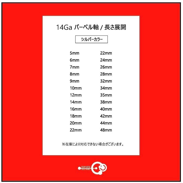 軸の長さは、『14Ga バーベル軸/長さ展開』のシルバーカラーよりお選び頂けます。