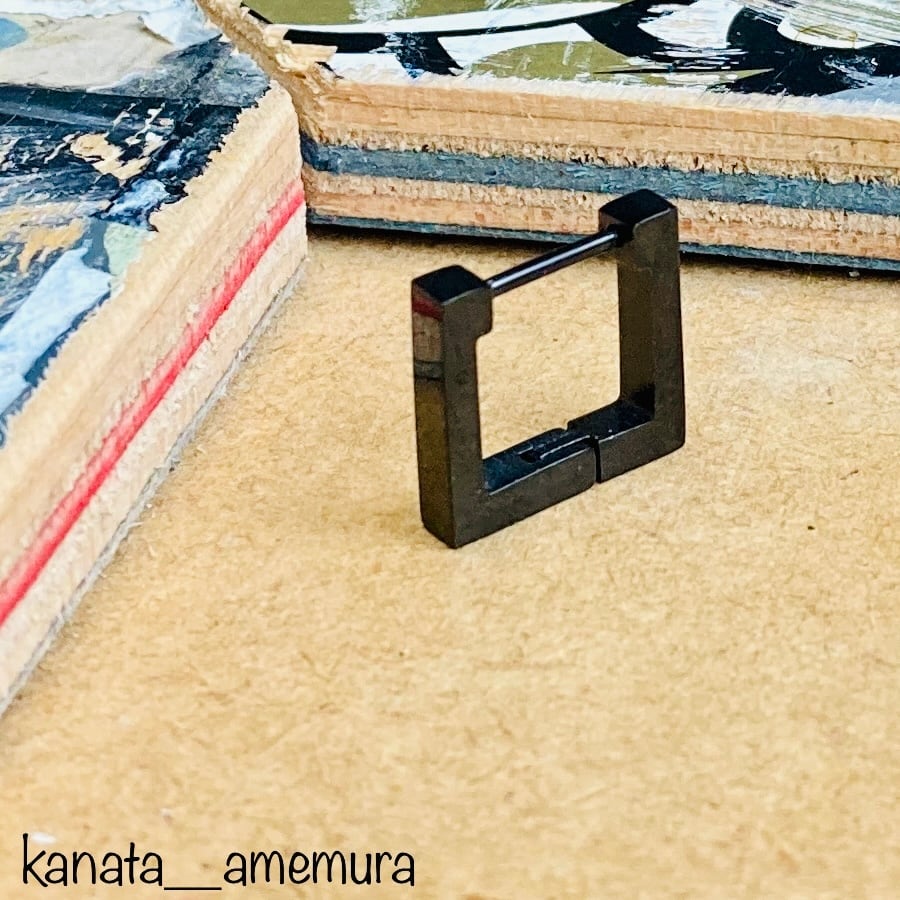 四角型ファッションリングピアス。。Ж Black Ver.。。
