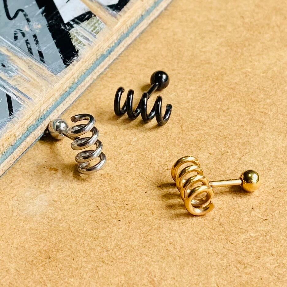 ☆ instagram ○ハイライト○ 掲載商品☆Gold&Black Coil バーベル 16Ga (No.KM-Z726)【316L】
