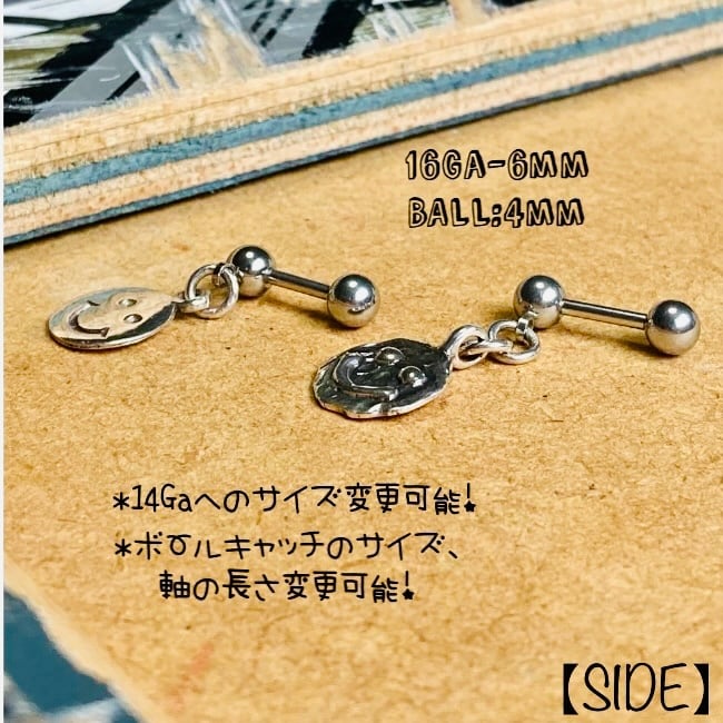 ☆ instagram ○ハイライト○ 掲載商品☆ Plane&凹凸 Smile チャームバーベル 16Ga (No.kps18,36)【316L/Silver 925】