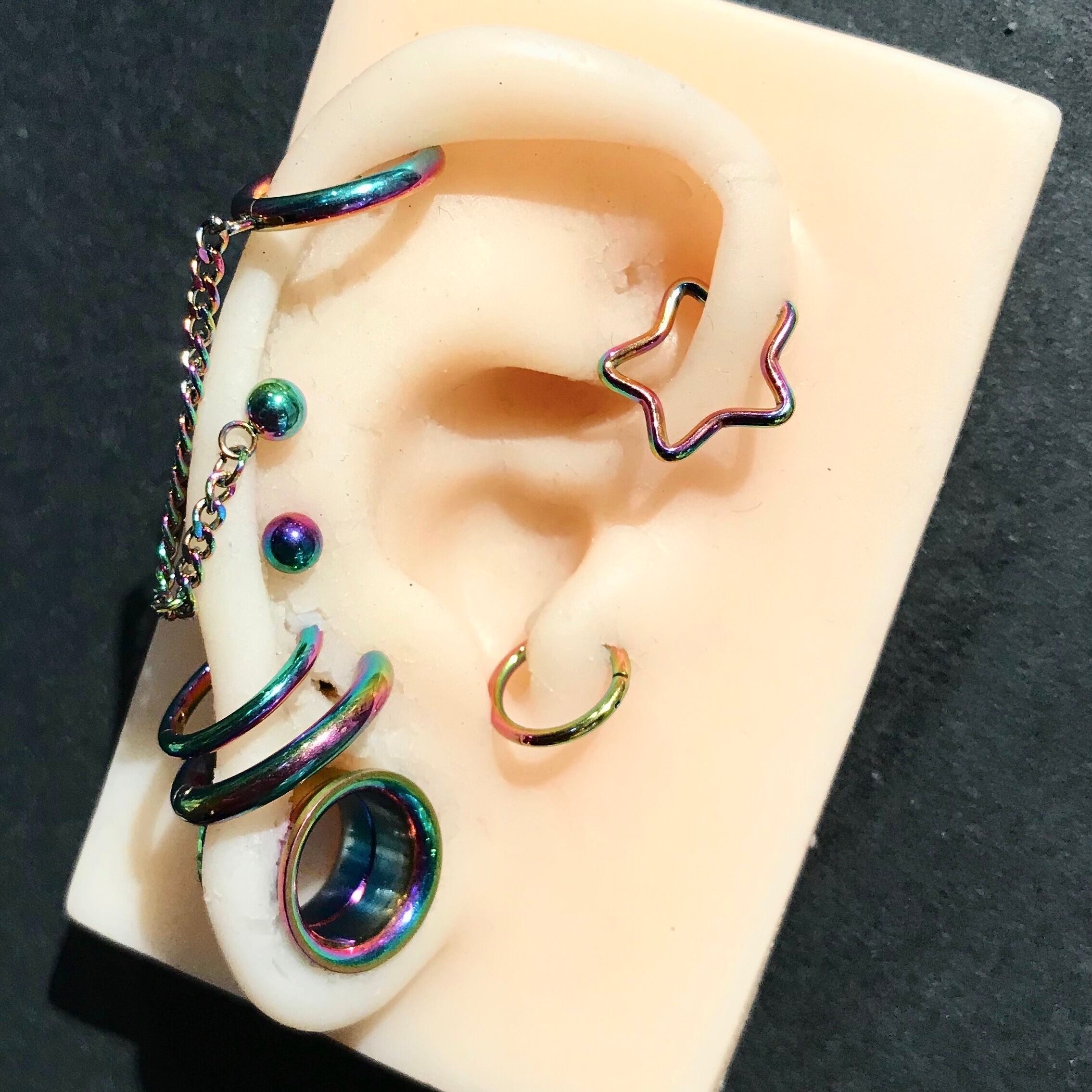 ☆ instagram ○ハイライト○ 掲載商品☆Green&Blue&Purple&Rainbow Star シームレスリング 18Ga (No.hw-f10)【316L】