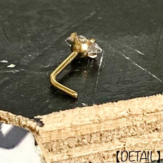 Gold Oval Jewel L字 鼻ピアス 20Ga (No.hw-l16)【316L】