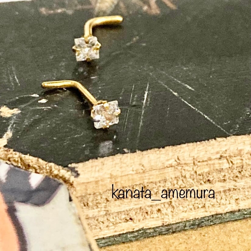 Gold Squere Jewel L字 鼻ピアス 20,18Ga (No.hw-l09)【316L】