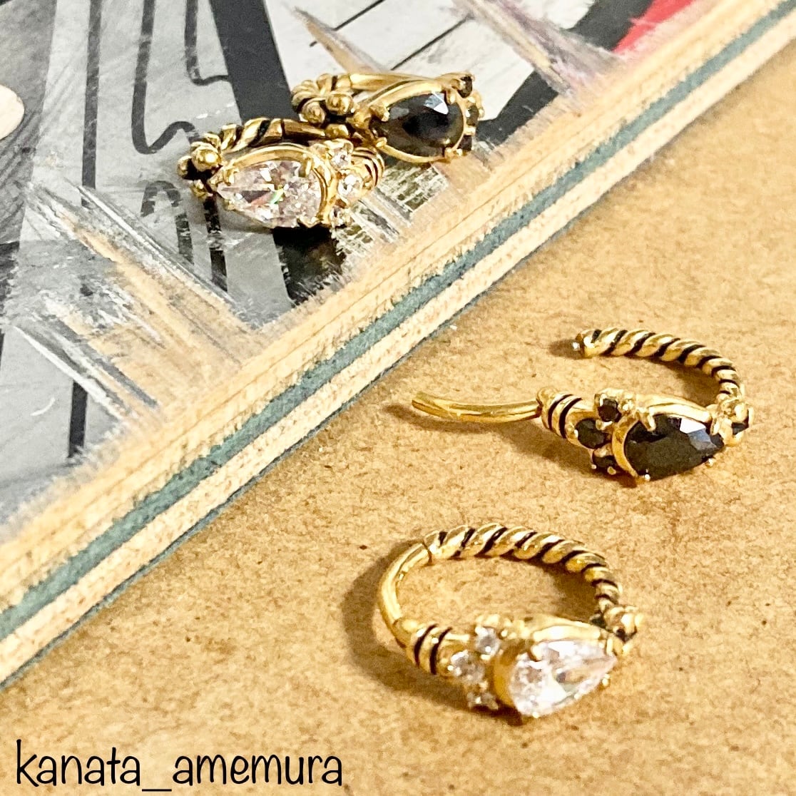 Gold TearDrop Jewel×Twist Design セグメントリング 16Ga (No.s&s-z12) 【316L】