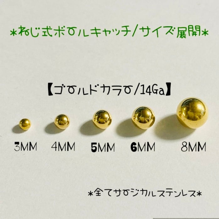 『ねじ式ボールキャッチ/サイズ展開』のゴールドカラーよりお選び頂けます。