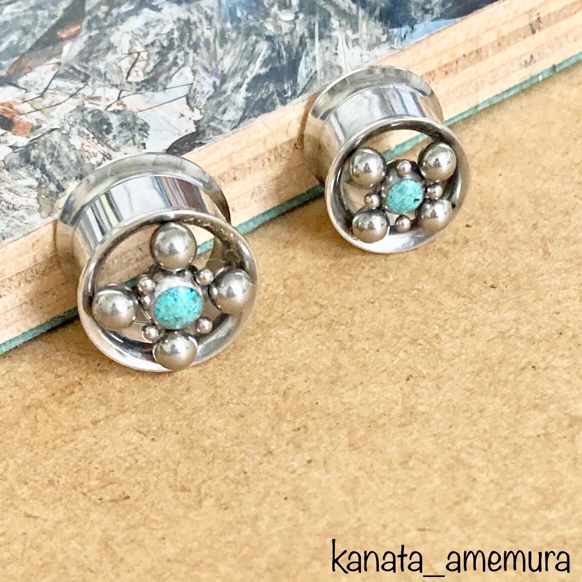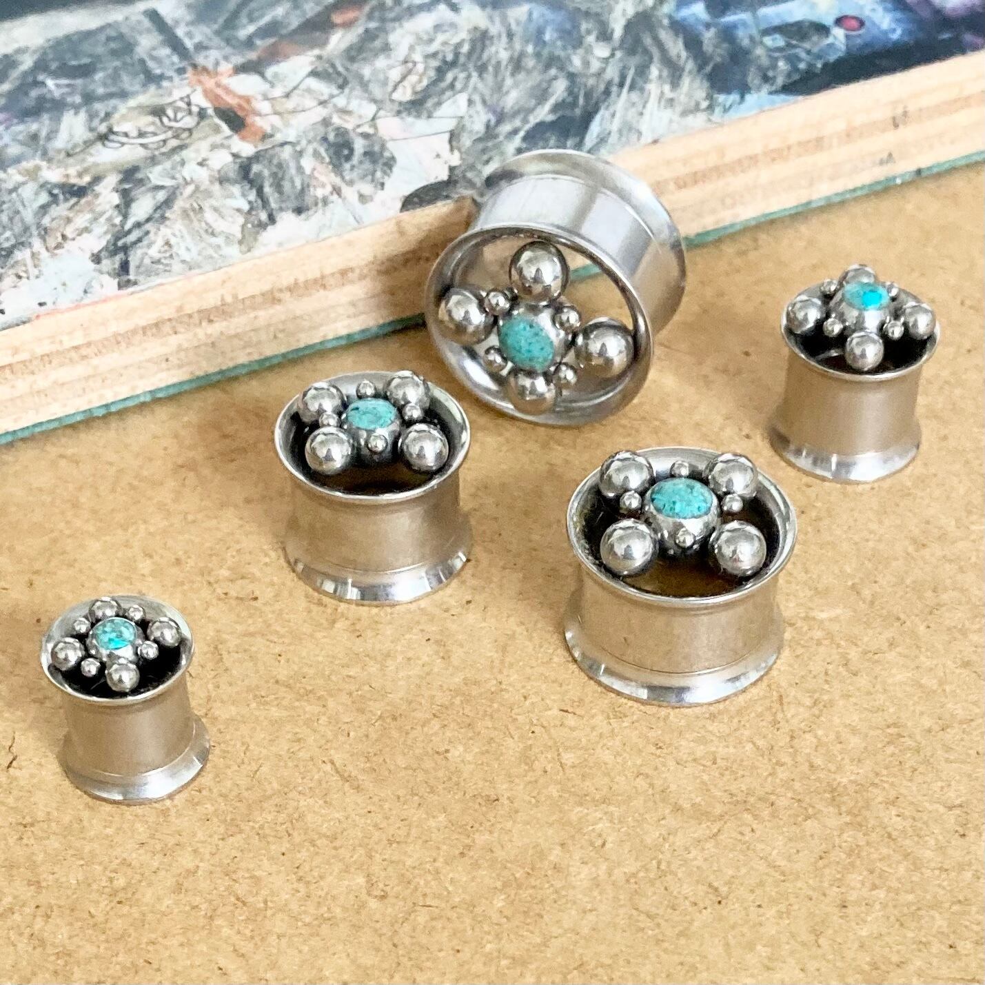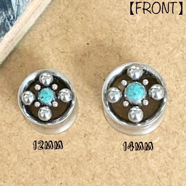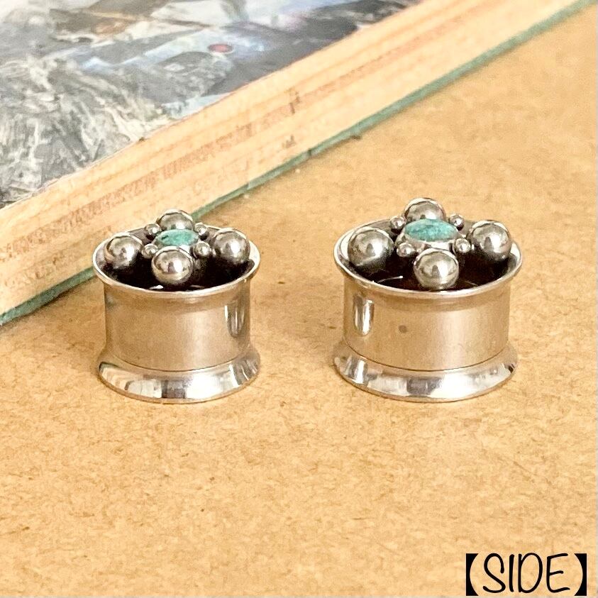 Ball×Turquoise Dot Design Internally Threaded Wフレアトンネル 12,14mm (No.ct-l057tq) 【316L】