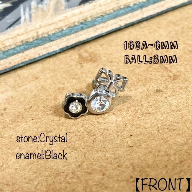 Butterfly×Flower with Jewel&Enamel デザインバーベル 16Ga (No.n-ssc37)【316L】