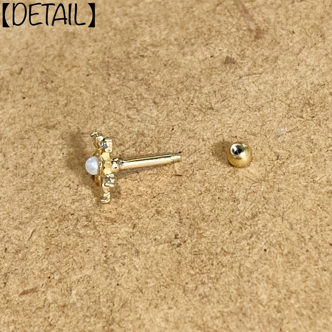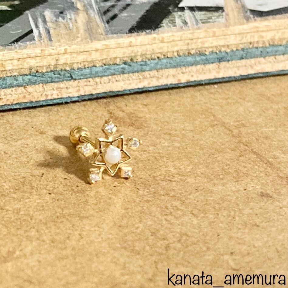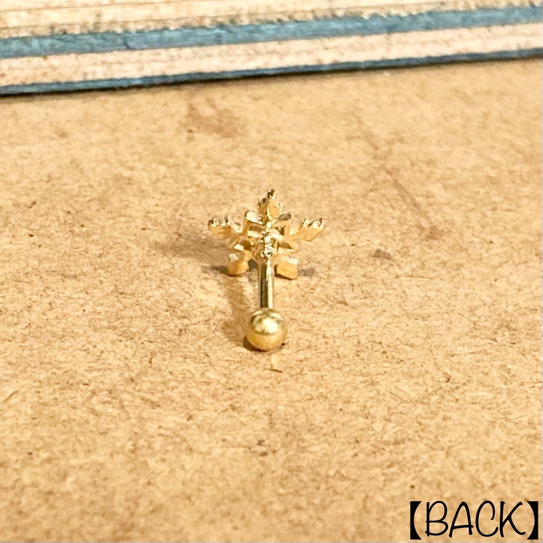 Gold Snowflake with Pearl×Jewel デザインバーベル 16Ga (No.n-ssc253)【316L】