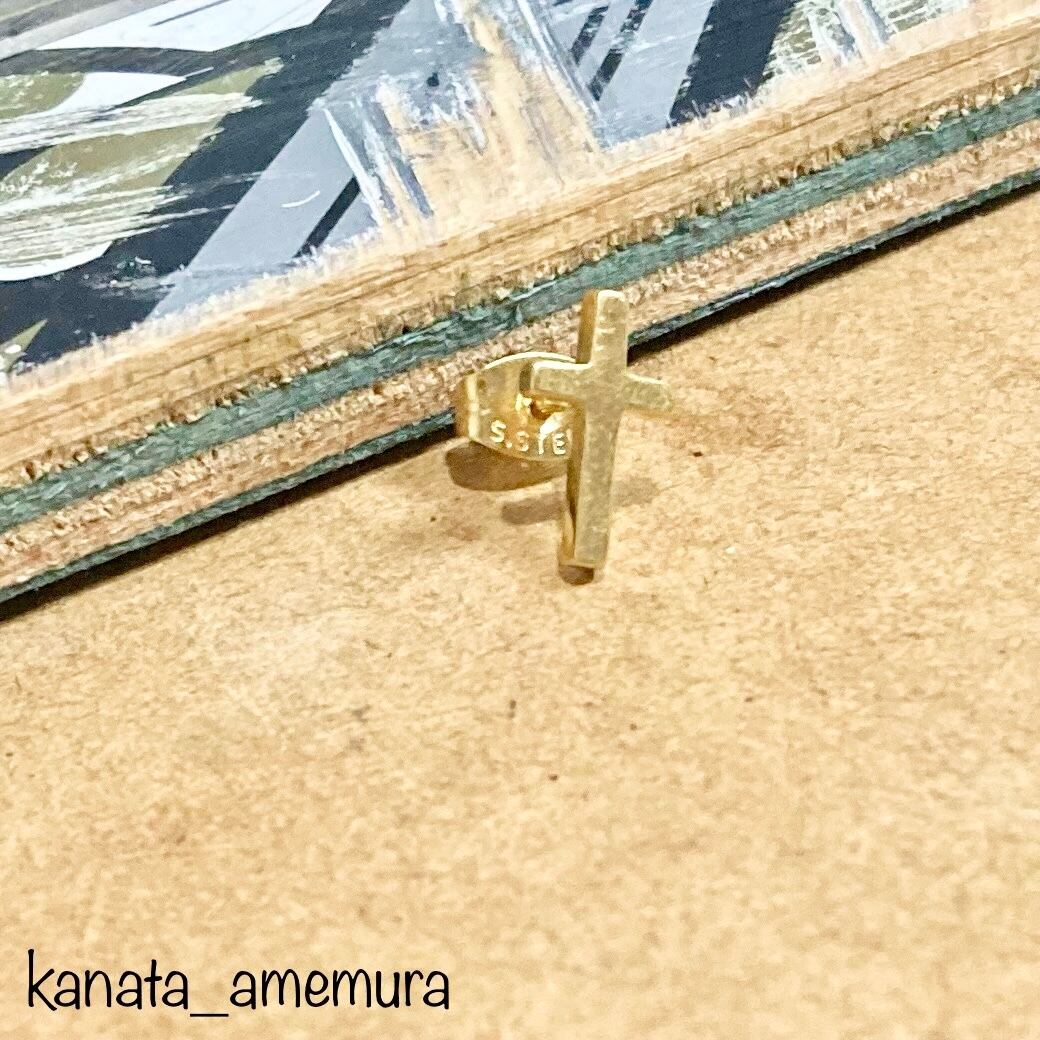 Gold Simple Cross ファッションピアス (No.n-gpsces-652)【316L】